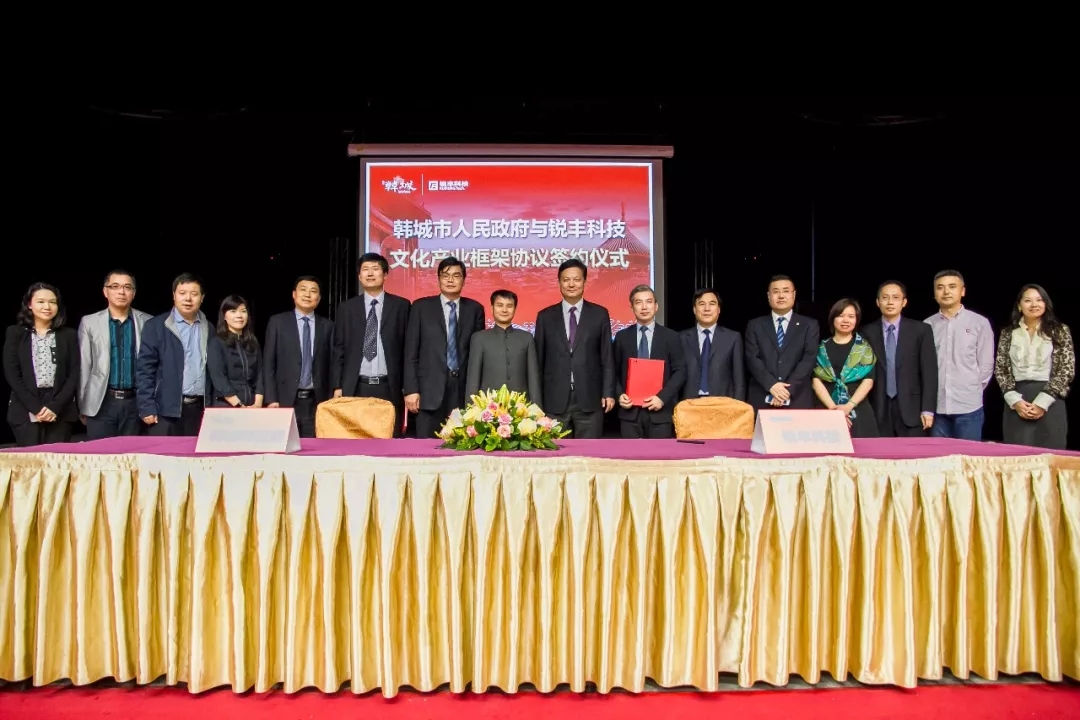 2016年,锐丰科技与韩城人民政府签下韩城市文化产业框架协议,为弘扬韩城文化精髓共同前进。希望通过政企合作弘扬韩城本土文化,讲述韩城的故事,演绎韩城人民的情怀,创造韩城的价值,确立“国际韩城”的旅游新模式,打造韩城地方新名片。
